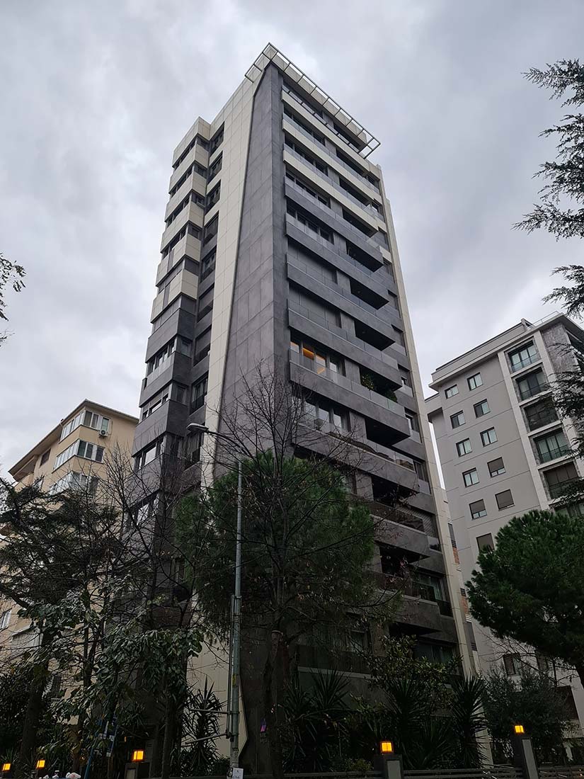Caddebostan - Sahil yolundaki yapımız 8 kat, 16 daire, 1.200 m2 arsa ve 2.700 m2 toplam inşaat alanına sahiptir.